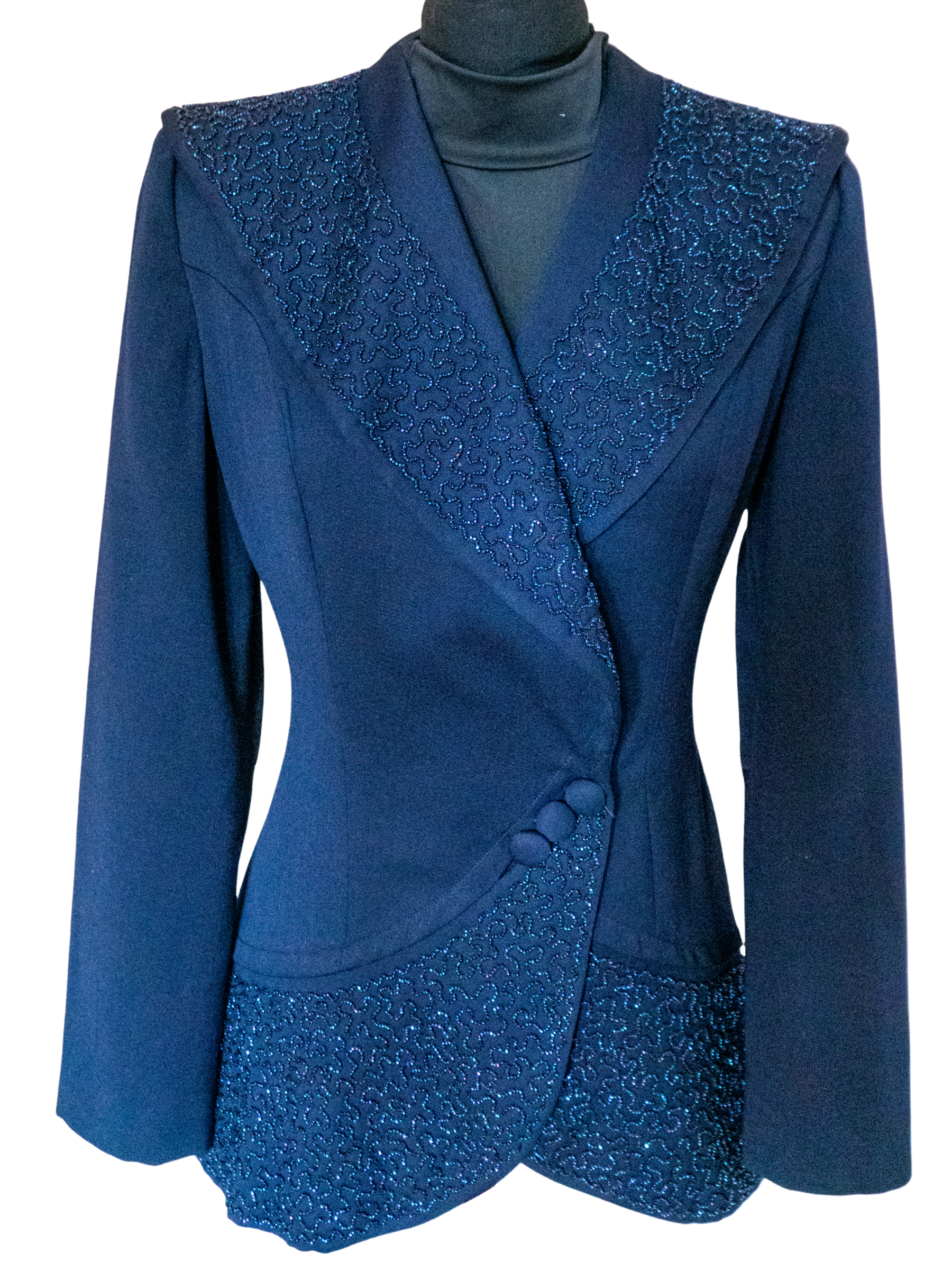 Architect of Night: 1940s Hand-Tailored Beaded Wool Blazer