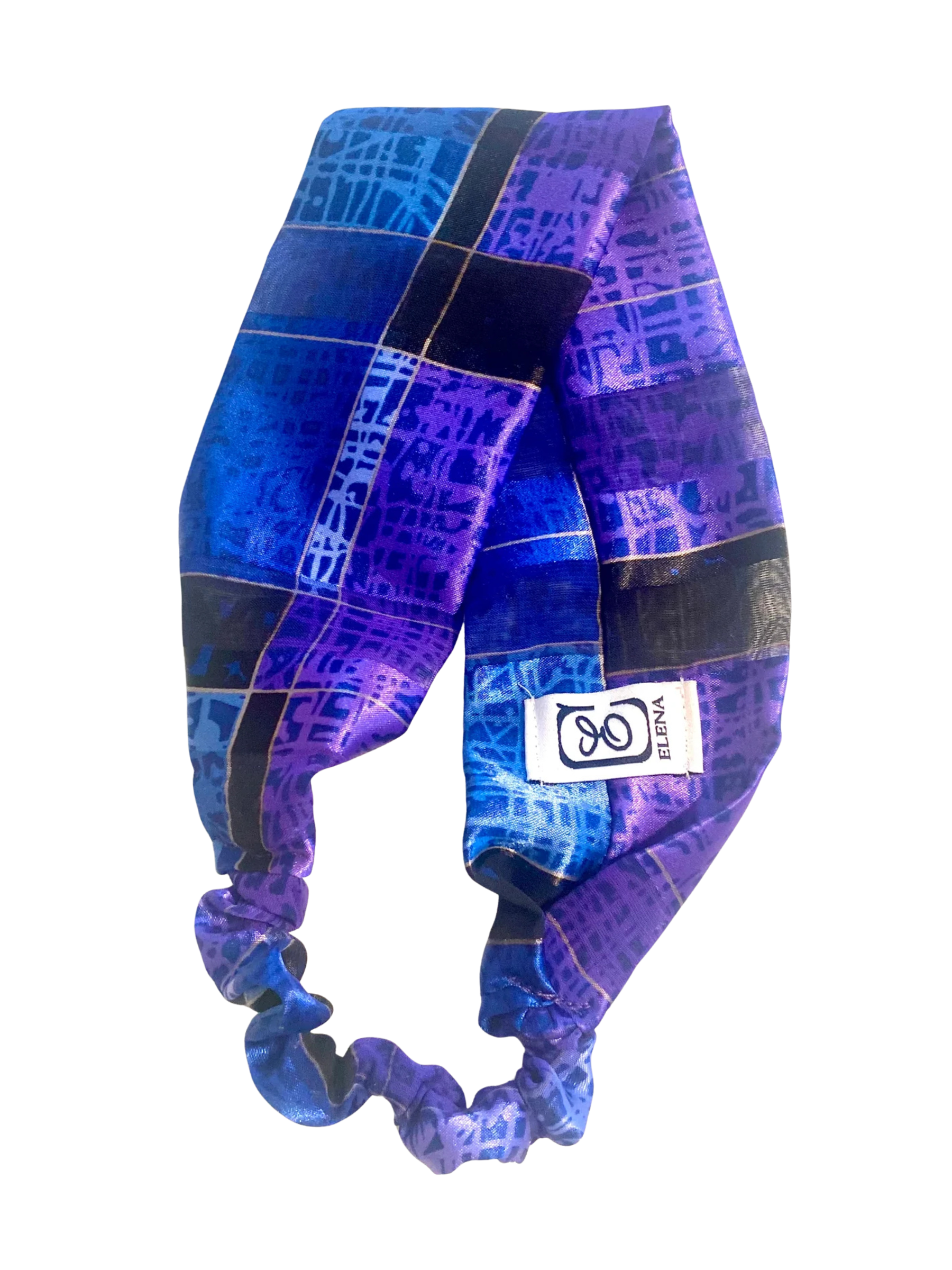 Chiffon headband in vibrant shades of violet and indigo Elastic Band on the back of the neck to keep it extra secure.