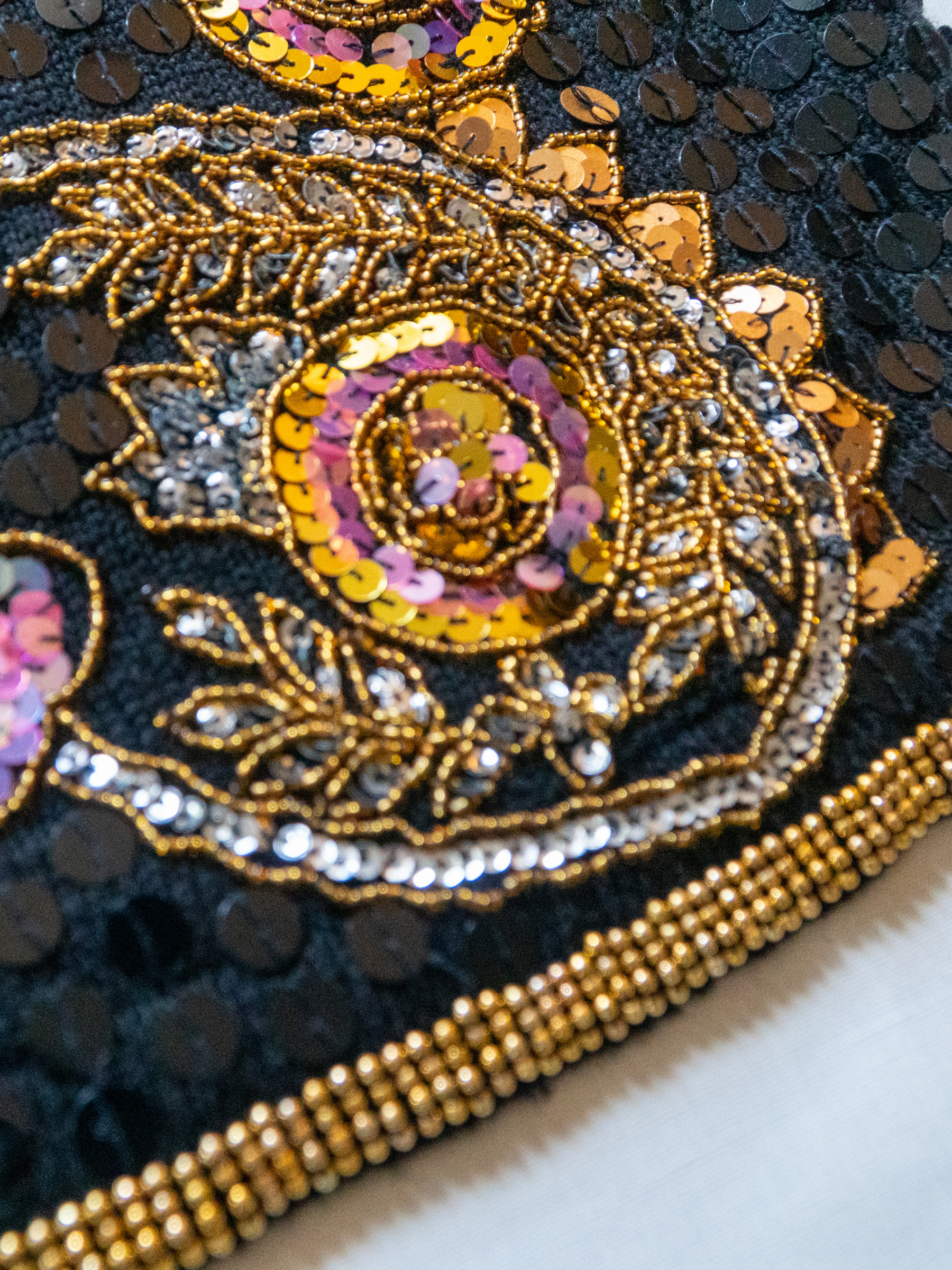 - Floral + paisley beaded motifs